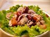 Воду сливаем в отдельную посуду, она нам пригодится позже. Чеснок пропускаем через пресс. Фасоль перекручиваем через мясорубку два – три раза. Орехи слегка подсушиваем в духовке, очищаем от кожицы (их просто потереть ладошками) и тоже пропускаем через мясорубку. Можно фасоль и орехи вместе с чесноком положить в блендер и пюрировать. Добавляем немного фасолевого отвара, размешиваем, добавляем масло, специи и доводим до желаемой консистенции. Пробуем на соль, если нужно – добавляем еще. Готовый паштет выкладываем в салатник, вилкой или ножом делаем узор и подаем к столу.