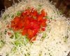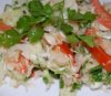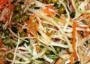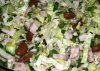 Зеленый лук, петрушку, укроп и иную зелень надо промыть, слегка просушить и пошинковать, затем переложить к капусте. Теперь надо пролить маслом и перемешать, можно также добавить и уксус. Салат после этого надо выложить в салатничек и украсить.