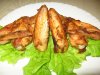 В сковороду налить масло, прогреть ее, затем положить крылышки и лук, обжаривать до красивого золотисто-янтарного цвета.