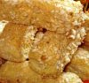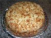 Из теста сделать четыре круглых коржа. Каждый корж надо разделить на две части, но легко отделяется, пока горячий. Затем обильно промазать кремом и присыпать крошкой.