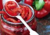 Перцы сладкие надо очистить и положить примерно на полминуты в крутой кипяток, после этого вытащить из кипятка и сразу положить в ледяную воду, таким образом, шкурка легко очиститься с перцев. После этого перцы надо нарезать на четыре части.