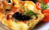 Формирует закусочные блинчики. На блин выложить смесь из икры, кетчупа и майонеза, затем положить листочки салата, далее полоски перца болгарского, затем разложить омлет. После этого все свернуть в рулет и убрать на холод, примерно на минут тридцать.