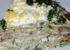 Для приготовления начинки, сначала надо испечь омлет из яиц, сливок и паприки. Потом порезать его на куски.
