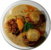 Овощи надо очистить. Кольраби нужно нарезать кружочками и сварить подсоленном молоке, минут двадцать. После этого переложить на дуршлаг и дать стечь молоку.