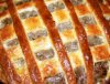 Из фарша надо сделать котлеты и обвернуть их в полоску бекона, затем крепим зубочисткой. После этого обжариваем на сковороде, выкладываем в форму и ставим запекаться в духовку на минут пятнадцать, температура примерно – сто восемьдесят градусов.