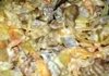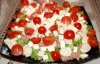 Йогурт надо смешать с майонезом, добавить перец и полить сверху салат. Разложить сверху по веточке зелени и можно подавать к столу.
