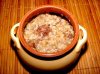На дно горшочка сначала кладем кусочек масла (или немного жира), выкладываем слой картошки, потом слой мяса, сверху кладем кусочек масла (жира), накрываем крышечкой и ставим в разогретую духовку на пятнадцать минут.