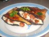 В сковородке разогреть смесь из двух видов масла (или только растительное масло), выложить баклажаны и обжарить до появления легкой румяной корочки. Сильно зажаривать баклажаны не нужно. Обжаренные баклажаны сложить в глубокий салатник, залить подготовленным маринадом, перемешать так чтобы маринад попадал на каждый кусочек. Накрыть салатник крышкой и оставить баклажаны на полчаса. Потом добавить мелко нарезанную кинзу или петрушку, еще раз перемешать. По желанию можно посыпать баклажаны кунжутными семенами.