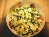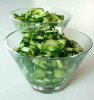 Яблоки обязательно должны быть кислого вкуса и твердые. Срежьте с них кожицу, нарежьте дольками (довольно толстенькими). Огурцы от кожицы не чистим, режем как на салат (не тоньше 7 мм), лук режем полукольцами, мелко режем перчик чили.