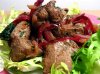 2. Печенку хорошенько промойте, обсушите, очистите от пленок и сухожилий. Посыпьте подготовленную печенку солью и перцем и положите на сковороду с сильно разогретым жиром. Обжарьте печенку с обеих сторон, часто поливая её жиром, в котором она жариться.
