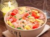 Фунчоза – тоненькая лапша из рисовой муки. Варят такую лапшу примерно пять минут, можно просто залить ее кипяточком, перемешать вилкой и оставить на 15-20 минут. Из рисовой лапши готовят вкусные и при этом не очень калорийные салатики. Предлагаю вашему вниманию салатик под названием « Фунчоза». Быстро готовится и моментально съедается.