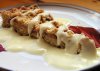 Кокосовую стружку разогреваем с маслом и молоком + сахар, тщательно размешиваем и этой тёплой (не горячей!) смесью заливаем наш пирог. Отправляем его на сорок минут в духовку, при этом температуру устанавливаем + 180.