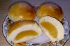 Яйцо взбейте с сахаром до состояния пышной массы белого цвета. Затем добавьте творог и взбейте еще раз. Апельсин разделите на дольки, освободите дольки от белой пленочки и нарежьте небольшими кусочками или разрежьте каждую дольку пополам. Абрикосы разделите на две половинки.