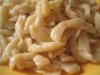Для теста взбить яйца с двумя столовыми ложками холодной воды. Подсыпать муку и замесить тесто, по плотности оно должно быть такое же как тесто на вареники. Дать ему отдохнуть полчаса. Затем раскатать, посыпать мукой и свернуть. Должна получиться узкая полоска. Ее разрезать на квадратики. С тестом работать примерно также как и с тестом на лапшу, только резать не так мелко.