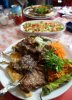 1. От бараньей корейки нарежьте котлеты с косточками по одной штуке на порцию и жарьте их на решётке или на сковороде с жиром до готовности.