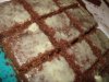 Пока остывает корж, приготовьте помадку. Для этого растопите на водяной бане шоколад и добавьте сливочное масло. Размешайте до однородной консистенции, смажьте остывший корж и разрежьте на кусочки.