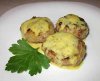 Куриный фарш пропустить через мясорубку вместе с творогом. Если творог нежный, однородный, то его просто смешать с прокрученным через мясорубку фаршем. Добавить желток, посолить, поперчить, приправить специями и карри. Положить мелко нарезанную зелень и хорошо вымешать фарш. Поставить его на полчасика в холодильник.