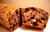 Сухофрукты нарезать небольшими кусочками. Изюм распарить на водяной бане, обсушить, добавить к кураге и черносливу. Посыпать мукой, чтобы она покрыла каждый кусочек и эту смесь добавить в тесто.
