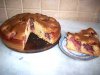 Поставить пирог в разогретую духовку, выпекать на среднем огне до готовности. готовность легко определить при помощи деревянной шпажки. Проткните пирог в центре, если палочка выходит из пирога сухая, пирог готов. Если тесто прилипает, пеките пирог еще некоторое время. Если верх уже хорошо подрумянился – закройте его фольгой.
