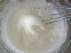 Итак, смешиваем в кастрюльке или в миске яичные белки, сахарную пудру и ванильный сахар. Ставим миску на кастрюльку с кипящей водой – делаем водяную баню. Взбиваем содержимое миски на высокой скорости. Миксер должен быть достаточно мощным. Взбивать нужно минут 7 – 8, белковая масса получается очень густой.