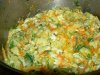 Кабачки очистите от кожицы, нарежьте кубиками. Лук мелко покрошите. Нарежьте небольшими кусочками копчености.