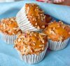 Готовое тесто разложить в смазанные маслом формочки. Заполнять примерно на две трети от объема. Поставить в разогретую до 200 градусов духовку, выпекать 15 – 20 минут. готовность выпечки обязательно проверьте зубочисткой – если она выходит сухая, без прилипшего теста – выключайте духовку, доставайте маффины. Дайте им немного остыть – так они легче достанутся из формочек.