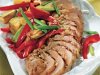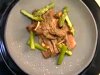 Для соуса смешать измельченный чеснок, имбирь, мелко нарезанный зеленый лук, соевый соус, устричный соус и вино. Получившимся маринадом полить мясо и оставить на два часа минимум, но лучше – на ночь. Затем мясо достать, маринад сохранить.