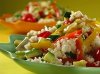 Капусту мелко шинкуем. Яйца отвариваем и нарезаем на четвертинки. Чистим помидоры от кожицы, убираем семена, а мякоть режем кубиками. Лапшу готовим по инструкции, промываем и режем на кусочки, длинной около 10 см.