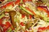 Капусту тонко шинкуем. Перетирать или мять не нужно, просто засыпьте небольшим количеством соли и перемешайте. Морковку и перец нарежьте соломкой, лук – тонкими полукольцами, помидоры – дольками. Если огурцы тепличные – их лучше очистить от кожицы, если грунтовые – чистить не обязательно. Нарежьте огурцы кружочками. Чеснок пропустите через чесночницу.