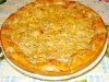 Форму смазываем маслом. выкладываем половину теста, разравниваем. Сверху выкладываем начинку (жареный лук и консервированная рыба, можно еще добавить вареный рис или вареные яйца, зелень), накрываем оставшимся тестом. Чтобы тесто аккуратно распределилось, его лучше выкладывать столовой ложкой. Выпекается пирог при температуре 200 градусов примерно 20 – 25 минут (время приготовления зависит от начинки).