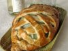 Отвариваем яйца, разрезаем их вдоль пополам. Тесто раскатываем в прямоугольник, на середину кладем половину фарша, потом – половинки яиц, Закрываем фаршем. По длинным сторонам прямоугольника делаем косые надрезы через 2-3 см. Соединяем полоски над фаршем – получается как плетенка. Прижимаем к начинке, а из остатков теста делаем украшения. Смазываем рулет яйцом, ставим в разогретую до 180 градусов духовку, выпекаем 40-50 минут. Приятного аппетита!