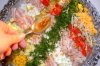 Список продуктов: четыреста граммов цветной капусты; сто шестьдесят граммов маринованной кукурузы (маленькие початки); сто граммов корнишонов; одна репчатая луковка; веточка розмарина; полкило говядины; сто граммов масла сливочного; пятьдесят граммов панировочных сухарей; один перец; две стол. ложки топленого масла; двести миллилитров красного вина; четыре стол. ложки сметаны; стол. ложечка рубленой петрушки; Капусту разбираем на соцветия и отвариваем в подсоленном кипяточке 12 минут. Сохраняем в тепле. Режем ломтиками корнишоны и кукурузу. Говяжье филе режем полосками. Лучок рубим кубиками. Обрываем листики розмарина и измельчаем ножом.