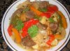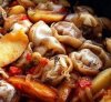 После этого подготовить казан, положить на дно слой мяса, затем выложить лук, потом опять мясо, затем лук и так послойно пока не закончится лук и мясо. Далее надо казан накрыть плотно крышкой и поставить на медленный огонь. Тушить мясо надо примерно 2 часа.
