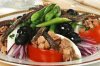Смешать для заправки оливковое масло с бальзамическим уксусом и майонезом. Полить салат заправкой и сразу же подавать к столу. Приятного аппетита!