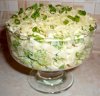 Зеленый лук мелко порезать и выложить на салатные листья. Размять вилкой консервированную рыбу, выложить следующим слоем.