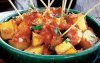 Нарядное пряное рагу «родом» из Юго-Восточной Азии.Список продуктов: пятьсот граммов говяжьего фарша, две столов. ложки масла растительного, один стаканчик говяжьего бульончика, две нарезанные репчатые луковки, свежий корень имбиря, размером 2.5 сантиметра (трем на терке), одна чайн. ложка соли, два нарубленных зубца чесночка, одна столов. ложка карри, пятьсот граммов нарезанной кубиками картошки, два нарезанных кубиками помидорчика. Вареной рис для гарнира и зелень для украшения.
