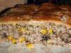 Наливаем говяжий бульончик и нагреваем до кипения. Тушим около 20 мин. Кладем фарш и тушим пять минут. Затем жидкость сливаем. Добавляем помидорчики, перемешиваем и тушим 60 сек.
