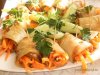 Баклажаны вымойте, обсушите, проткните вилкой в нескольких местах чтобы они не лопнули во время запекания. Поставьте противень в разогретую до 180 градусов духовку и запекайте до мягкости. Кожица на баклажанах должна потемнеть и сморщиться. Готовые баклажаны слегка остудите и снимите кожицу.