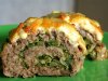 Противень застелить фольгой, смазать маслом и выложить фарш ровным слоем. Сверху распределить натертый на крупной терке сыр и посыпать пряными травами. С помощью фольги свернуть рулет, переложить на чистый лист фольги, завернуть, но так, чтобы фольга не прилегала плотно к верху рулета. В верхней части фольги сделать проколы для выхода пара и запекать 50 минут на среднем огне.