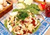 На крупной терке натрите сыр (предварительно срежьте твердую кожицу). Болгарский перец нарежьте небольшими кусочками, шампиньоны – ломтиками или кубиками, мелко порубите зелень. Тщательно смешайте все ингредиенты (масляную смесь, овощи и грибы).