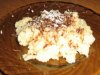 Чернику (или другие ягоды, какие есть) засыпать оставшимся сахаром и варить пять минут. остудить ягоды. Сливки взбить миксером в плотную пену, аккуратно смешать с манной кашей.