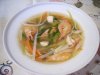 Необычный вариант горохового супчика с хересом и эстрагоном.Список продуктов: два стебля лука-порея, репчатая луковица, сто граммов копченой колбаски нарезанной кубиками, одна крупная картофелина, одна морковка, четыреста граммов желтого гороха, две копченые рульки, один стебель сельдерея, парочка лавровых листиков, 2/3 стакана хереса (марсалы), листики от трех веточек орегано, две веточки эстрагона, черный и красный перчик, три зубчика чесночка, соль, немного постного масла.