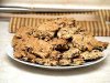 Мягкое сливочное масло или маргарин смешайте с сахаром и разотрите в пышную массу. По одному добавляйте яйца, не прекращая растирать массу. Потом добавьте ваниль, просеянную муку, соль, гашеную соду, корицу и хорошо вымешайте массу. Если используете орехи – порубите их кусочками, изюм распарьте на водяной бане. Добавьте овсянку (ее лучше размолоть блендером до состояния крупной крошки), орехи с изюмом, хорошо вымешайте тесто.