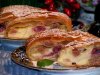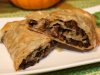 Расстелить два лаваша таким образом, чтобы один был поверх другого и смазать их очень обильно яично-сахарной смесью, а затем распределить по ним начинку из слив. После этого скатать все в рулет и отправить штрудель в разогретую духовку минут на 20.