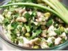 Заправка: 3 столовые ложки оливкового масла, 1 столовая ложка яблочного уксуса, 1 столовая ложка лимонного сока, 1 столовая ложка горчицы, соль, черный молотый перец по вкусу.