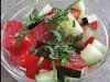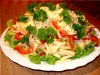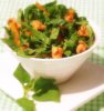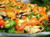 Выложить горкой на листья салата, полить заправкой, посыпать сверху петрушкой и эстрагоном.