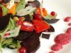 Такой нежный и очень яркий и нарядный салатик с просто потрясающим освежающим кисло-сладким вкусом многим, я думаю, придется по душе! Готовится этот салат на удивление быстро и прекрасно подойдет в качестве гарнира к блюдам из мяса или птицы.Для приготовления такого салата вам понадобятся следующие продукты: 70 граммов шампиньонов, 150 граммов свежей клубники, 150 граммов спаржи (подойдет как свежая, так и консервированная спаржа) и 100 граммов салатного микса, а кроме этого одна чайная ложечка сахара, три чайных ложки молотых орехов, две столовых ложки орехового масла, сок одного лимона, соль и перец.