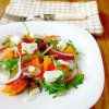 Салат этот получается просто замечательно вкусным и даже те, кто не слишком-то жалует такой продукт, как тыква, обязательно должны его попробовать - вполне возможно, что отношение к блюдам из тыквы после этого изменится. Ну и также нельзя не отметить вкуснейший клюквенный соус, который готовится для заправки такого салатика, все вместе создает просто потрясающий вкус!Список составляющих для салата: 450 граммов тыквы, три некрупные свеклы, один довольно большой пучок салата (или салатного микса), 30-40 граммов почищенных семечек тыквы, одна небольшая головка сладкого лука, стакан свежей клюквы (или же ее можно заменить 80 граммами сушеных ягод), два зубка чеснока, полторы столовых ложки винного уксуса, шесть-семь столовых ложек оливкового масла, две чайных ложки столовой горчицы, половина апельсина, сыр Пармезан, молотый черный перец, карри, соль.
