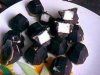 Подобный необычный рецепт конфет подходит для питания в пост, ведь в качестве основы для них используется горох нут. По своему вкусу данная сладость чем-то напоминает вкус халвы в шоколаде, ну а догадаться из чего же изготовлены эти конфетки на самом деле практически невозможно.Список необходимых ингредиентов для таких конфет: один с половиной стакан вареного или консервированного гороха нут, три столовых ложки кунжутной пасты (или же вместо нее можно использовать любую ореховую пасту), три столовых ложки меда, по небольшой щепотки соли и ванилина, а кроме этого 225 граммов горького шоколада (не содержащий животных жиров).