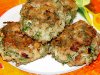 Оладьи из консервированного лосося - нежные и пышные, отлично разнообразят меню. Можно, по желанию, вместо крекеров использовать любой вид муки.Необходимые продукты: 2 баночки консервированного лосося (в собственном соку), 500 гр соленых крекеров, 2 яйца, 2 корнишона, 1 столовая ложка лимонного сока, 2 столовые ложки подсолнечного рафинированного масла, 1 столовая ложка сливочного масла, по вкусу - черный молотый перец, меленый кайенский, соль. Пучок петрушки и укропа.